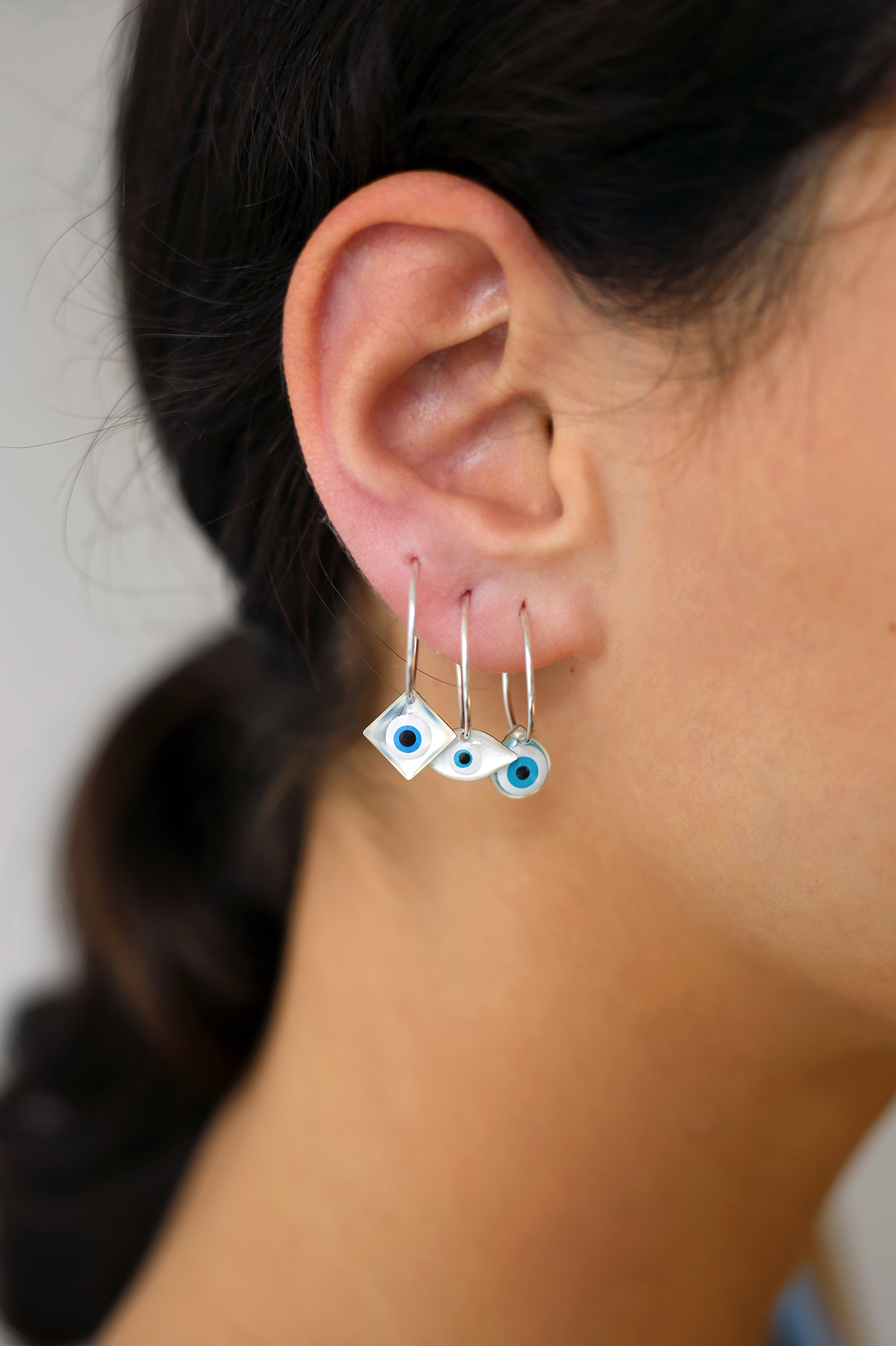“Mati xxs earrings” collection is one of our most popular collections of charms, which you can find it in a wide variety of colors and with 2 plating options (platinum and gold). “Mati” bears a symbolic shape that is believed to have the power to protect from jealousy and negative energy and it recalls the ancient Greek periapts (small pendant charms).