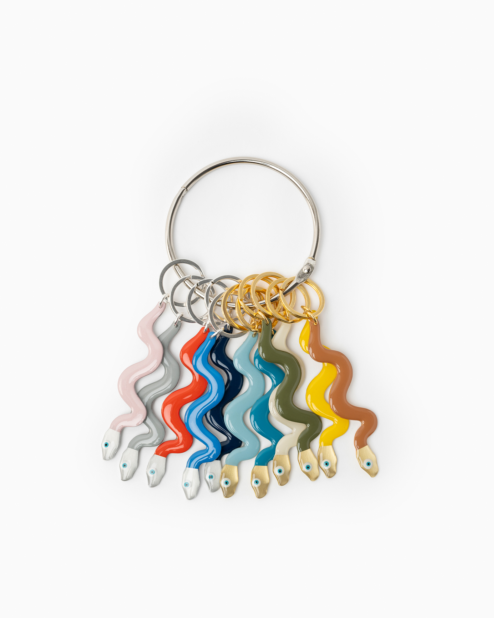 “Snake Keyring” is a collection of charms, made of bronze or aluminum. The collection is available in a wide variety of colors.